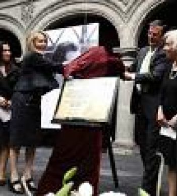 Los asistentes develaron una placa dorada en la que se puede leer lo siguiente: "En homenaje al escritor, maestro, crítico, abogado de la esperanza mexicana, apasionado sobre nuestro futuro y mexicano universal, el gobierno del Distrito Federal, la comunidad cultural y los habitantes de esta ciudad, denominan a este recinto: Museo de la ciudad de México Carlos Fuentes (1928–2012). Ciudad de México 22 de Mayo de 2012".